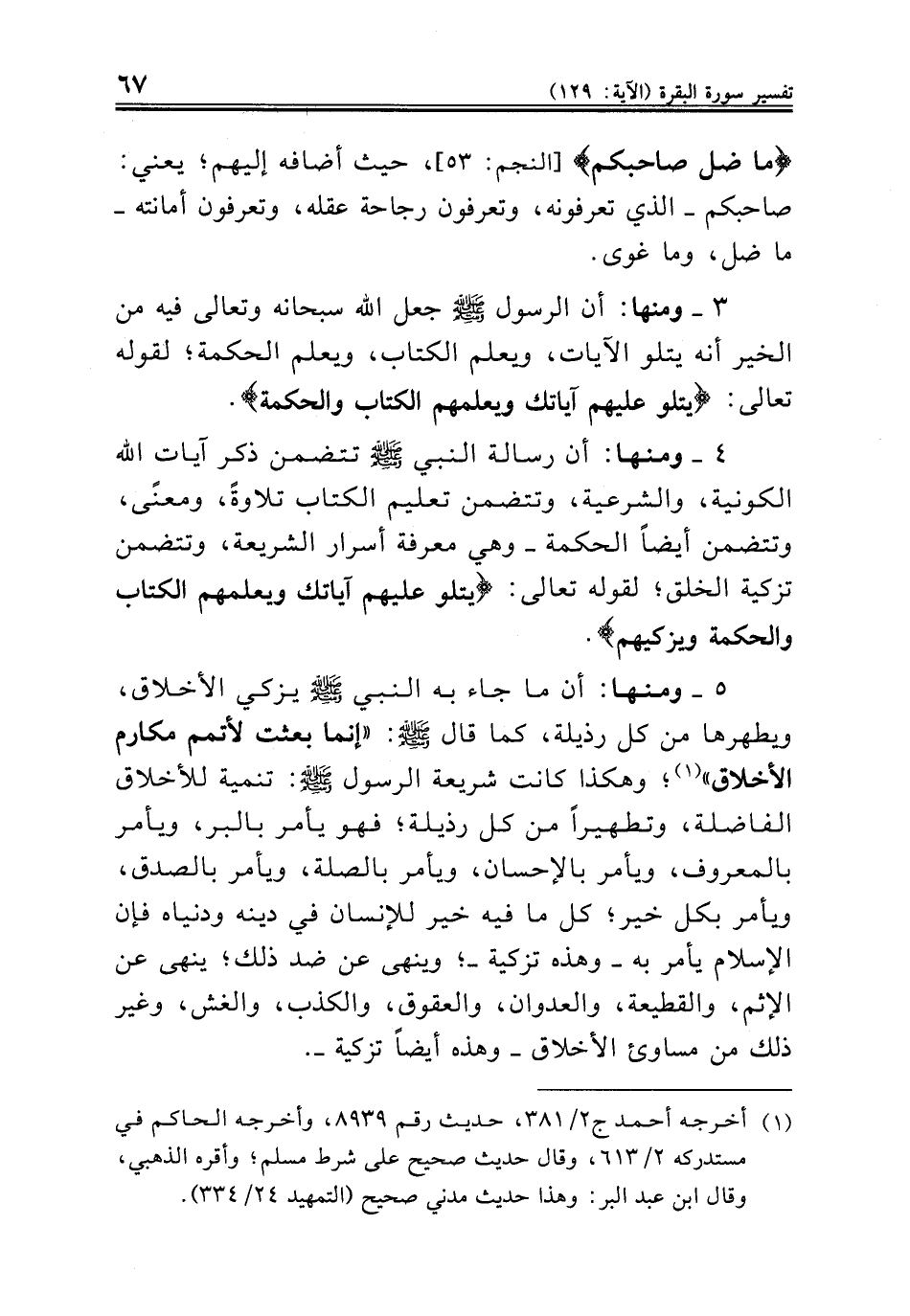 (¬١) أخرجه أحمد ج ٢/ ٣٨١، حديث رقم ٨٩٣٩، وأخرجه الحاكم في مستدركه ٢/ ٦١٣، وقال حديث صحيح على شرط مسلم؛ وأقره الذهبي، وقال ابن عبد البر: وهذا حديث مدني صحيح (التمهيد ٢٤/ ٣٣٤).