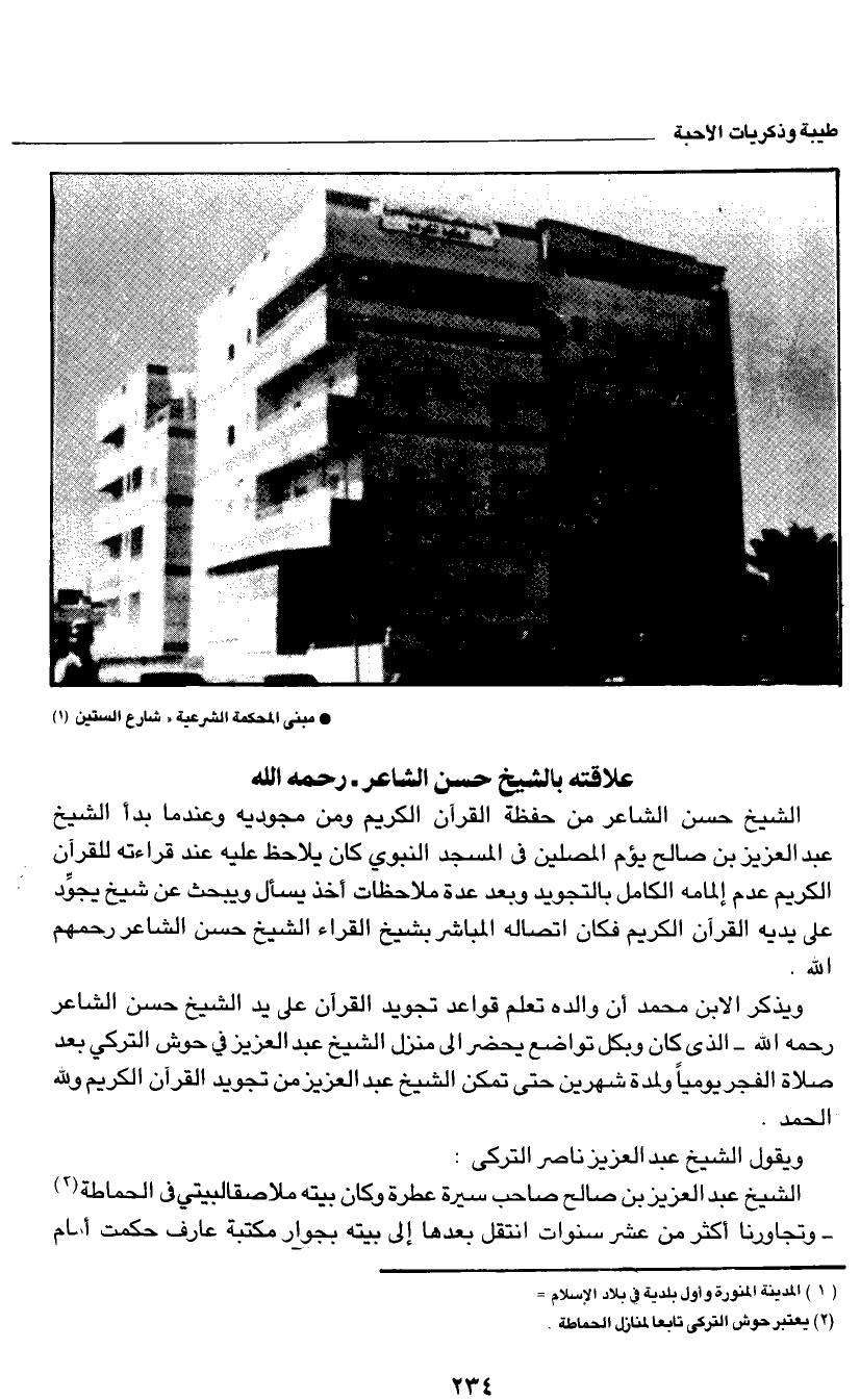 الشيخ عبد العزيز بن صالح صاحب سيرة عطرة وكان بيته ملاصقا لبيتي في الحماطة (2) - وتجاورنا أكثر من عشر سنوات انتقل بعدها إلى بيته بجوار مكتبة عارف حكمت أيام.