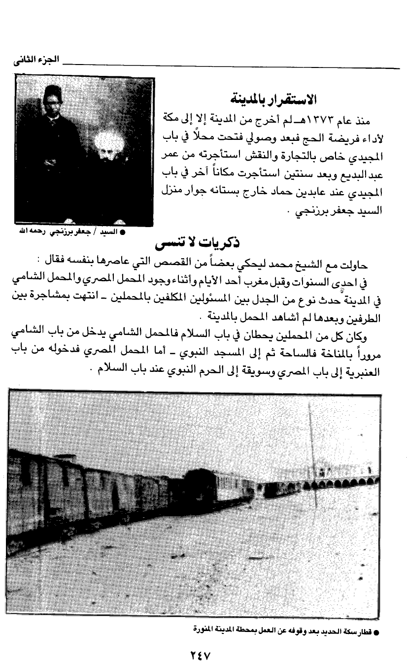 منذ عام 1373هـ لم أخرج من المدينة الا إلى مكة لأداء فريضة الحج فبعد وصولي فتحت محلاً في باب المجيدي خاص بالتجارة والنقش استأجرته من عمر عبد البديع وبعد سنتين استأجرت مكاناً آخر في اباب المجيدي عند عابدين حماد خارج بستانه جوار منزل السيد جعفر برزنجي.