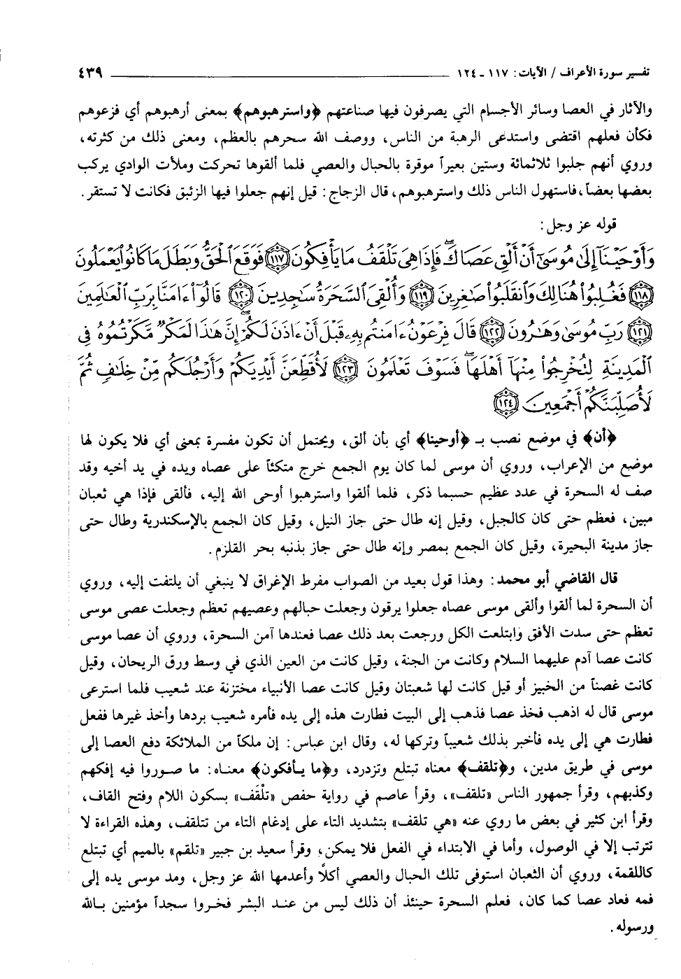 [سورة الأعراف (٧) : الآيات ١١٧ الى ١٢٤]