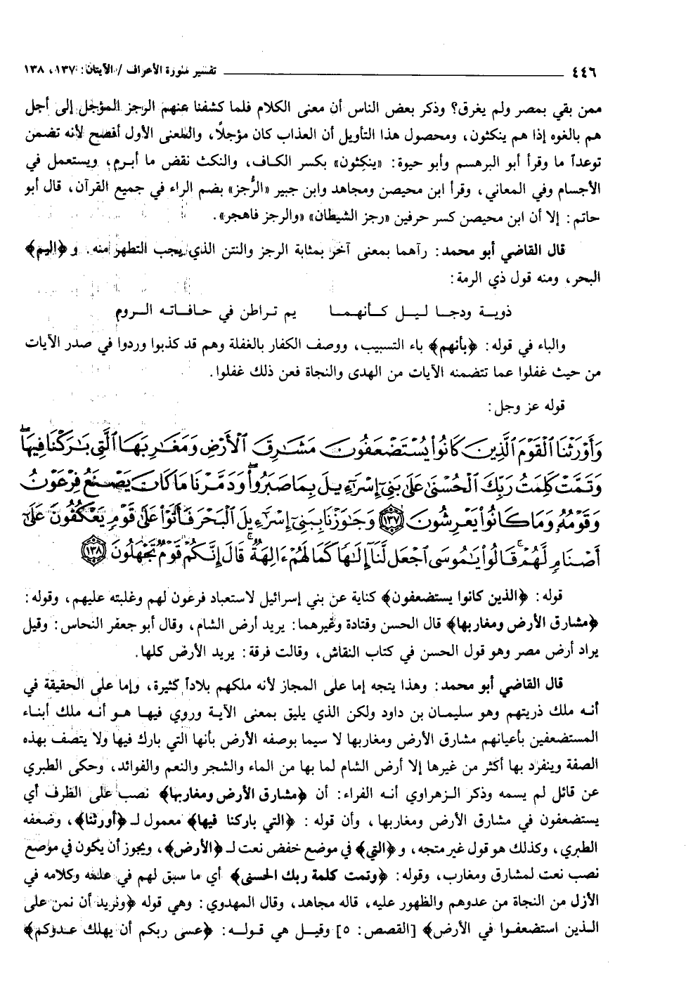 [سورة الأعراف (٧) : الآيات ١٣٧ الى ١٣٨]