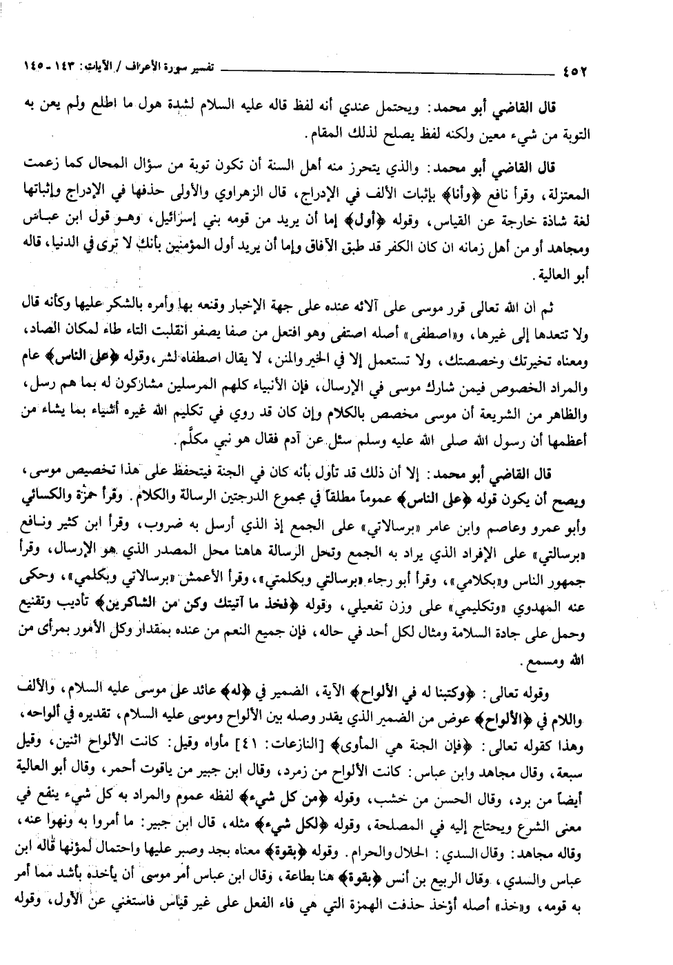 قالَ يا مُوسى إِنِّي اصْطَفَيْتُكَ عَلَى النَّاسِ بِرِسالاتِي وَبِكَلامِي فَخُذْ ما آتَيْتُكَ وَكُنْ مِنَ الشَّاكِرِينَ (١٤٤) وَكَتَبْنا لَهُ فِي الْأَلْواحِ مِنْ كُلِّ شَيْءٍ مَوْعِظَةً وَتَفْصِيلاً لِكُلِّ شَيْءٍ فَخُذْها بِقُوَّةٍ وَأْمُرْ قَوْمَكَ يَأْخُذُوا بِأَحْسَنِها سَأُرِيكُمْ دارَ الْفاسِقِينَ (١٤٥)