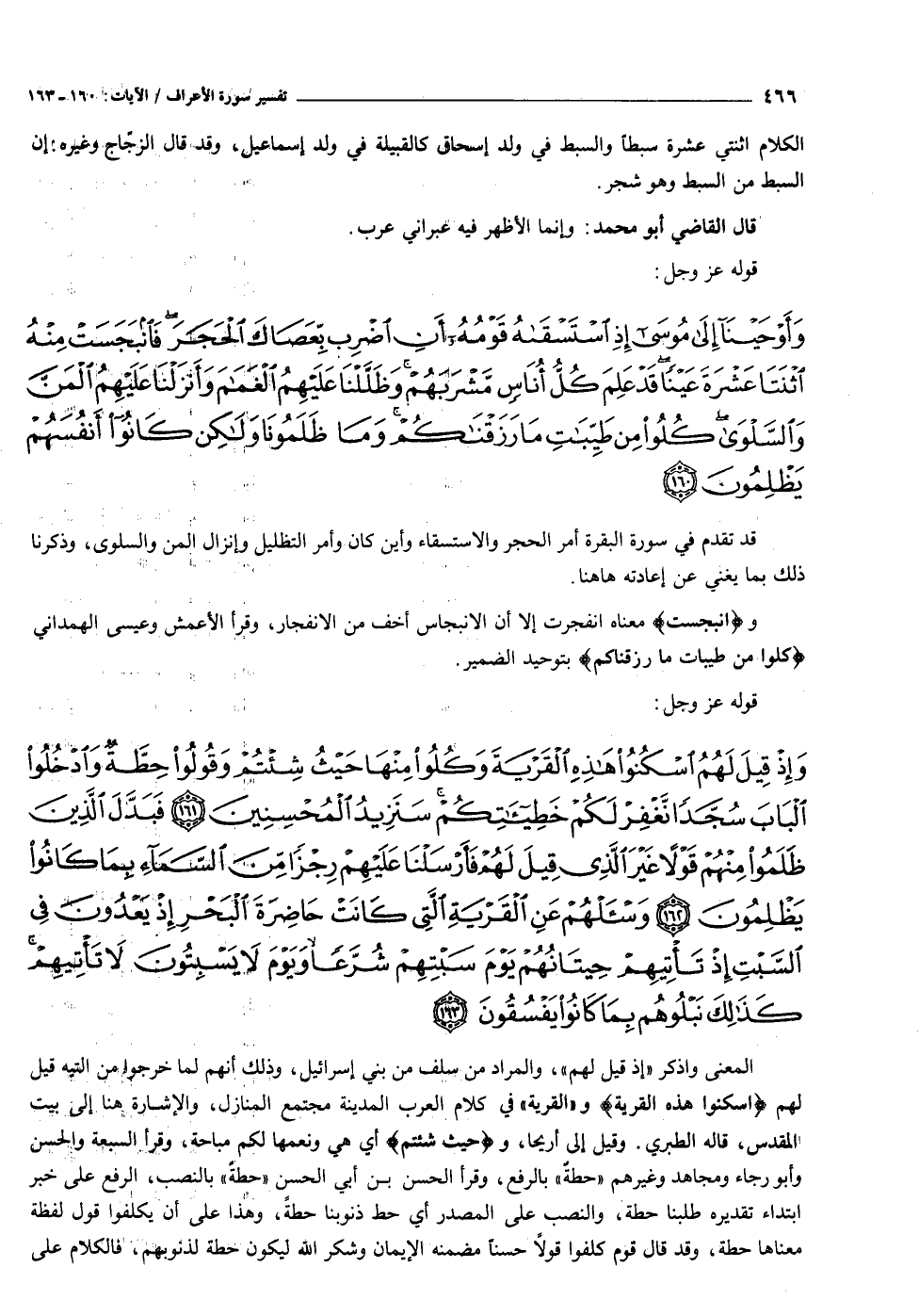 وفَانْبَجَسَتْ معناه انفجرت إلا أن الانبجاس أخف من الانفجار، وقرأ الأعمش وعيسى الهمداني كُلُوا مِنْ طَيِّباتِ ما رَزَقْناكُمْ بتوحيد الضمير.