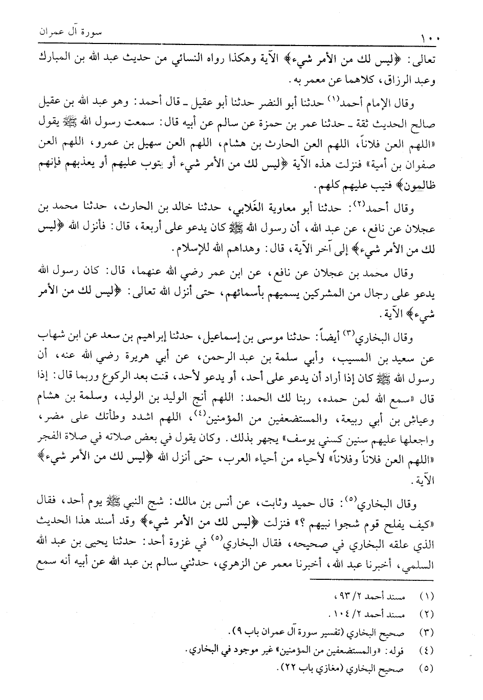 تعالى: لَيْسَ لَكَ مِنَ الْأَمْرِ شَيْءٌ الآية وَهَكَذَا رَوَاهُ النَّسَائِيُّ مِنْ حَدِيثِ عَبْدِ اللَّهِ بْنِ الْمُبَارَكِ وَعَبْدِ الرَّزَّاقِ، كِلَاهُمَا عَنْ مَعْمَرٍ بِهِ.