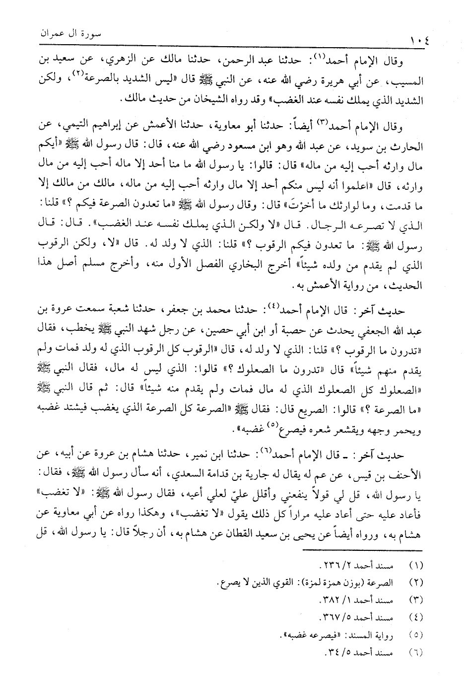 وَقَالَ الْإِمَامُ أَحْمَدُ «1» : حَدَّثَنَا عَبْدُ الرَّحْمَنِ، حَدَّثَنَا مَالِكٌ عَنِ الزُّهْرِيِّ، عَنْ سَعِيدِ بْنِ الْمُسَيَّبِ، عَنْ أَبِي هُرَيْرَةَ رَضِيَ اللَّهُ عَنْهُ، عَنِ النَّبِيِّ صَلَّى اللَّهُ عَلَيْهِ وَسَلَّمَ قَالَ «لَيْسَ الشَّدِيدُ بِالصُّرَعَةِ «2» ، وَلَكِنَّ الشَّدِيدَ الَّذِي يَمْلِكُ نَفْسَهُ عِنْدَ الْغَضَبِ» وَقَدْ رَوَاهُ الشَّيْخَانِ مِنْ حَدِيثِ مالك.