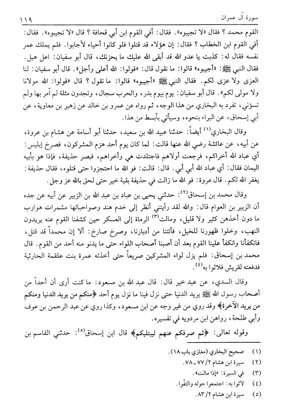وقوله تعالى: ثُمَّ صَرَفَكُمْ عَنْهُمْ لِيَبْتَلِيَكُمْ قَالَ ابْنُ إِسْحَاقَ «5» : حدثني القاسم بن