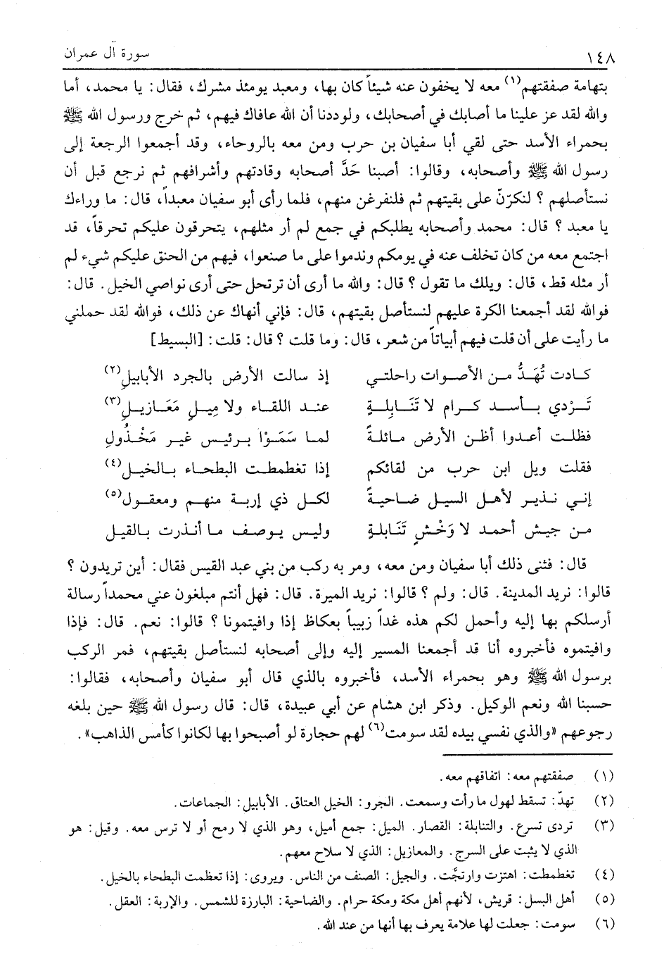 حَسْبُنَا اللَّهُ وَنِعْمَ الْوَكِيلُ. وَذَكَرَ ابْنُ هِشَامٍ عَنْ أَبِي عُبَيْدَةَ، قَالَ: قَالَ رَسُولُ اللَّهِ صَلَّى اللَّهُ عَلَيْهِ وَسَلَّمَ حِينَ بَلَغَهُ رُجُوعُهُمْ «وَالَّذِي نَفْسِي بِيَدِهِ لَقَدْ سُوِّمَتْ «6» لَهُمْ حِجَارَةٌ لَوْ أصبحوا بها لكانوا كأمس الذاهب» .