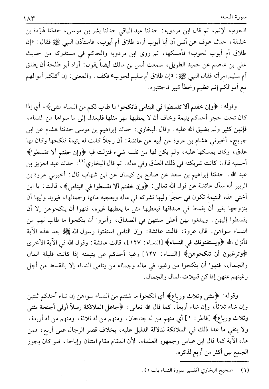 (1) صحيح البخاري (تفسير سورة النساء باب 1) .