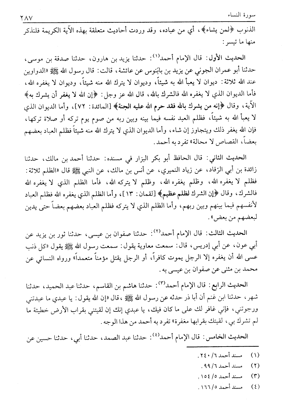 الْحَدِيثُ الْخَامِسُ: قَالَ الْإِمَامُ أَحْمَدُ «4» : حَدَّثَنَا عَبْدُ الصَّمَدِ، حَدَّثَنَا أبي، حدثنا حسين عن