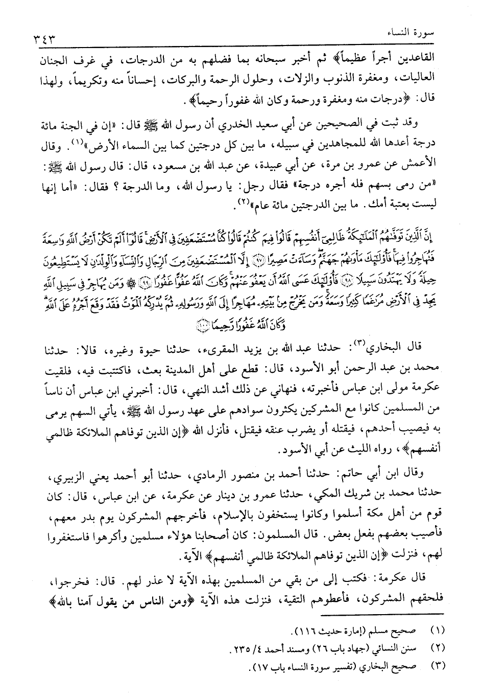 (3) صحيح البخاري (تفسير سورة النساء باب 17) .