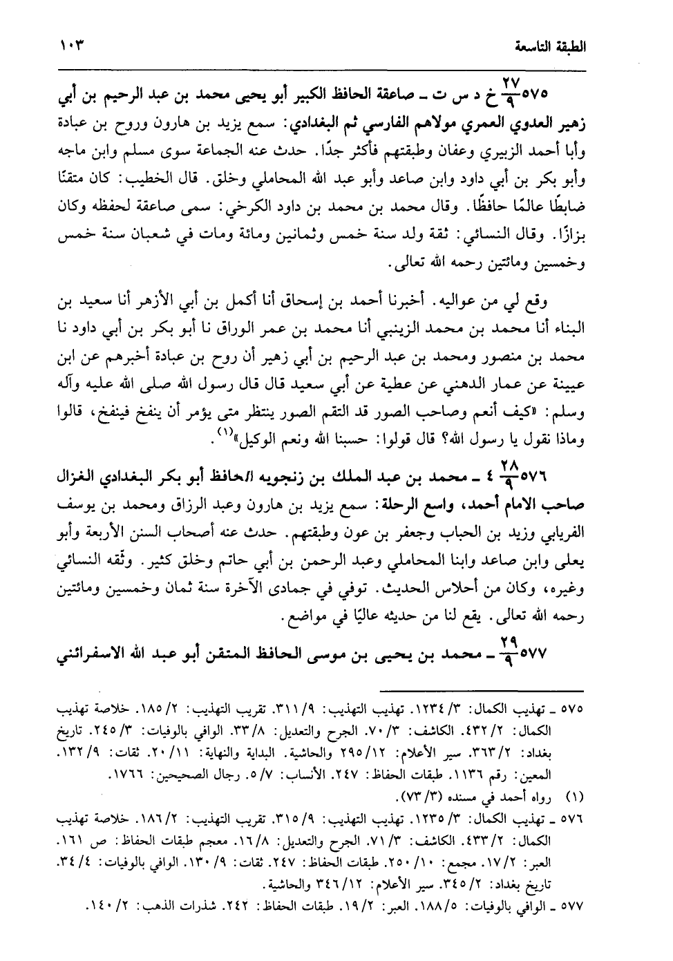 575- 27/ 9خ د س ت- صاعقة الحافظ الكبير أبو يحيى محمد بن عبد الرحيم بن أبي زهير العدوي العمري مولاهم الفارسي ثم البغدادي: