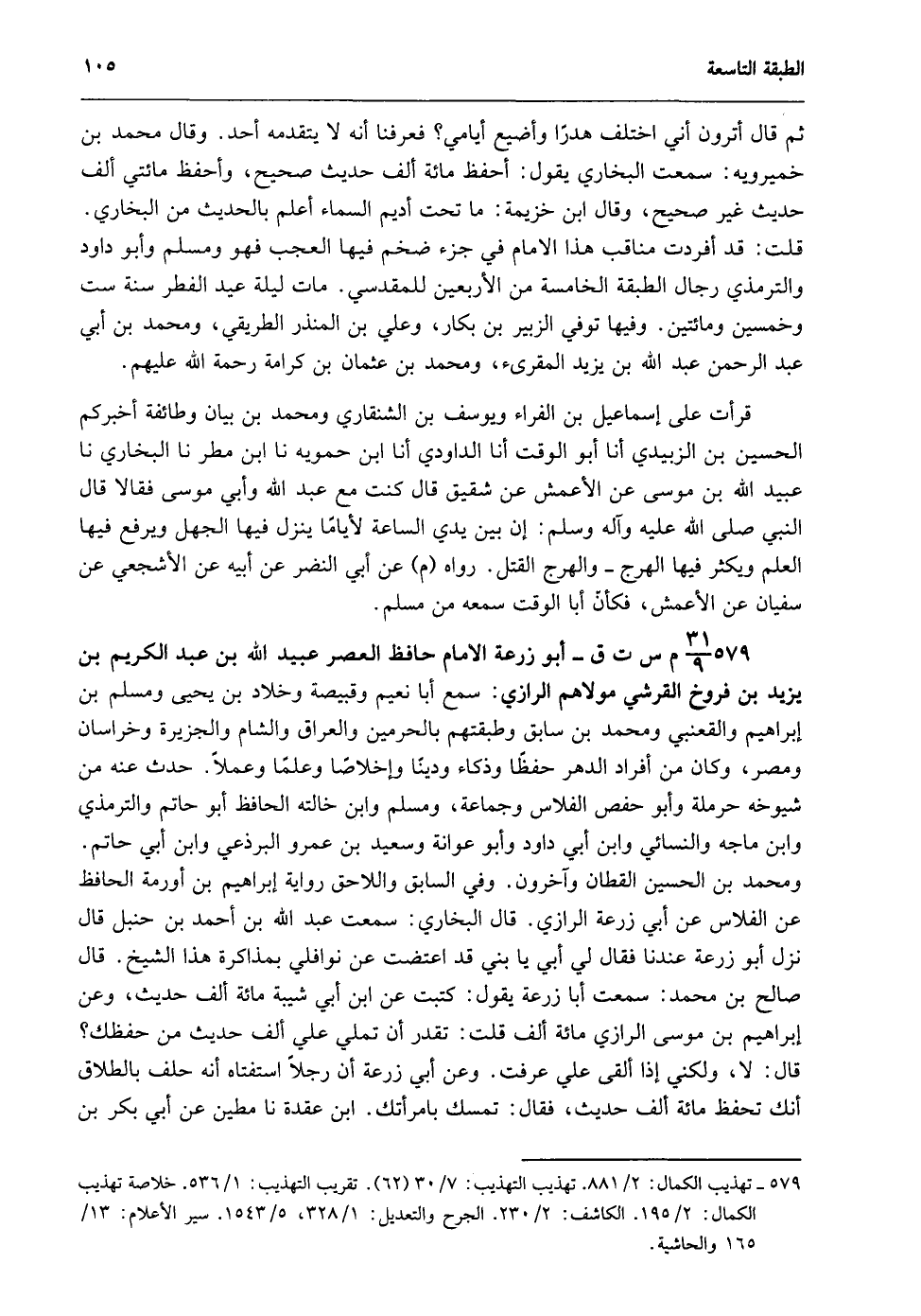 579- 31/ 9م س ت ق- أبو زرعة الإمام حافظ العصر عبيد الله بن عبد الكريم بن يزيد بن فروخ القرشي مولاهم الرازي: