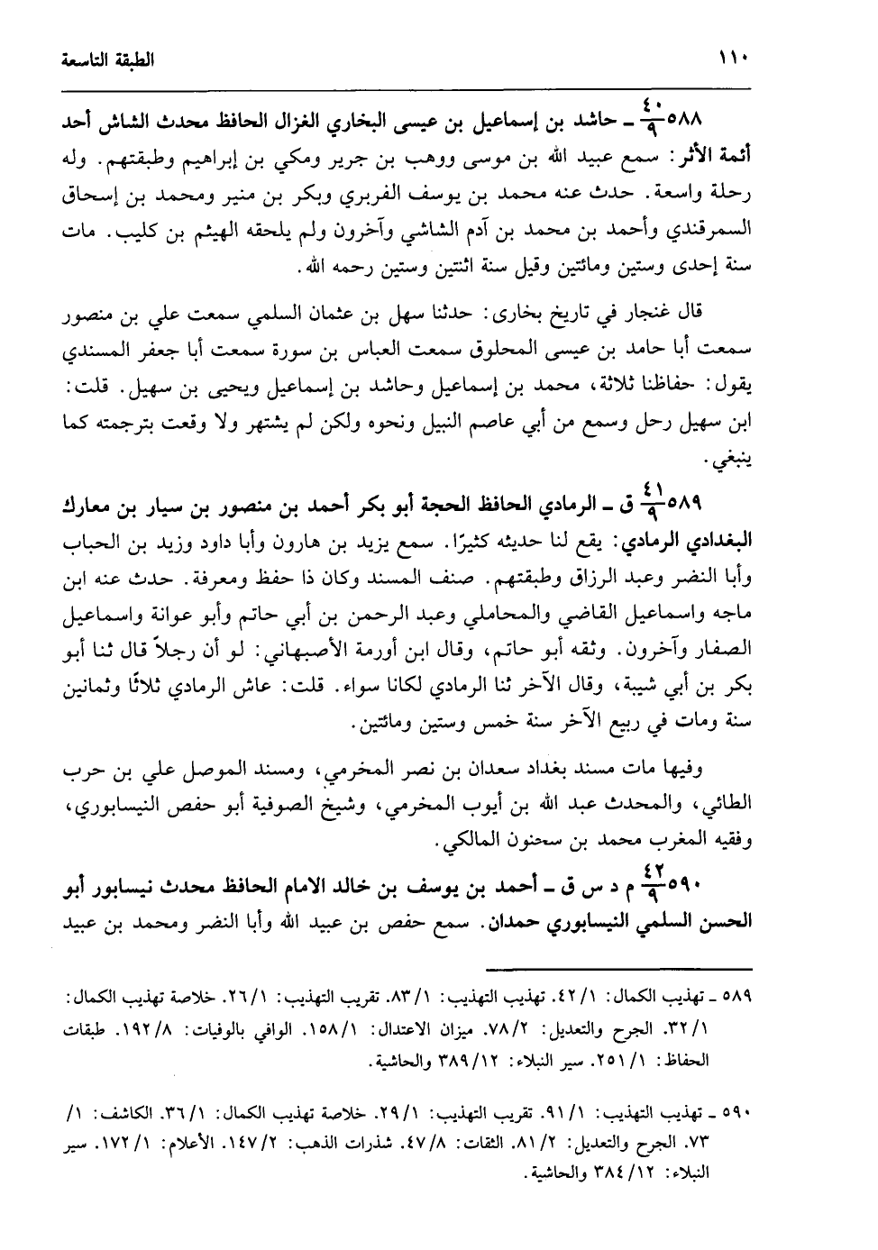 588- 40/ 9 حاشد بن إسماعيل بن عيسى البخاري الغزال الحافظ محدث الشاش أحد أئمة الأثر:
