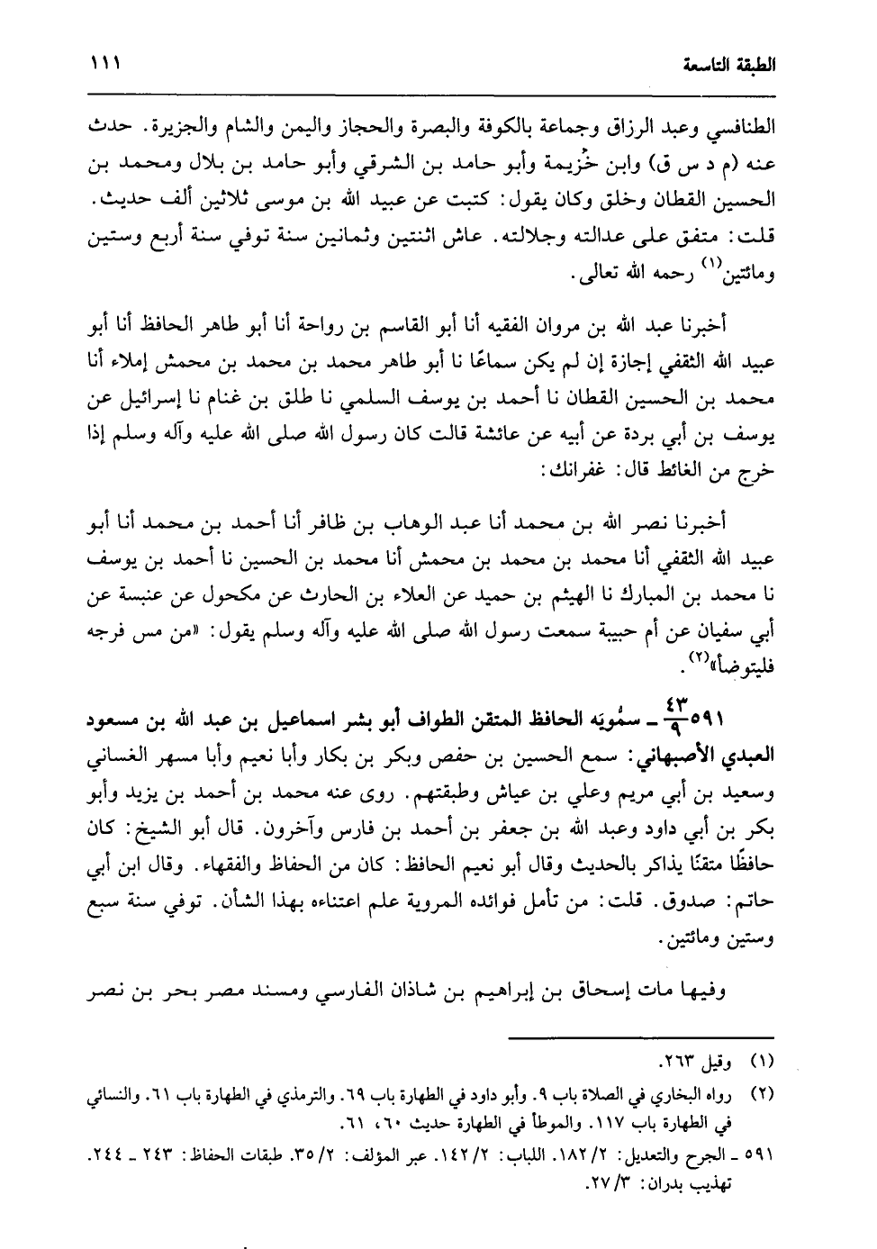 591- الجرح والتعديل: 2/ 182. اللباب: 2/ 142. عبر المؤلف: 2/ 35. طبقات الحفاظ: 243-244. تهذيب بدران: 3/ 27.
