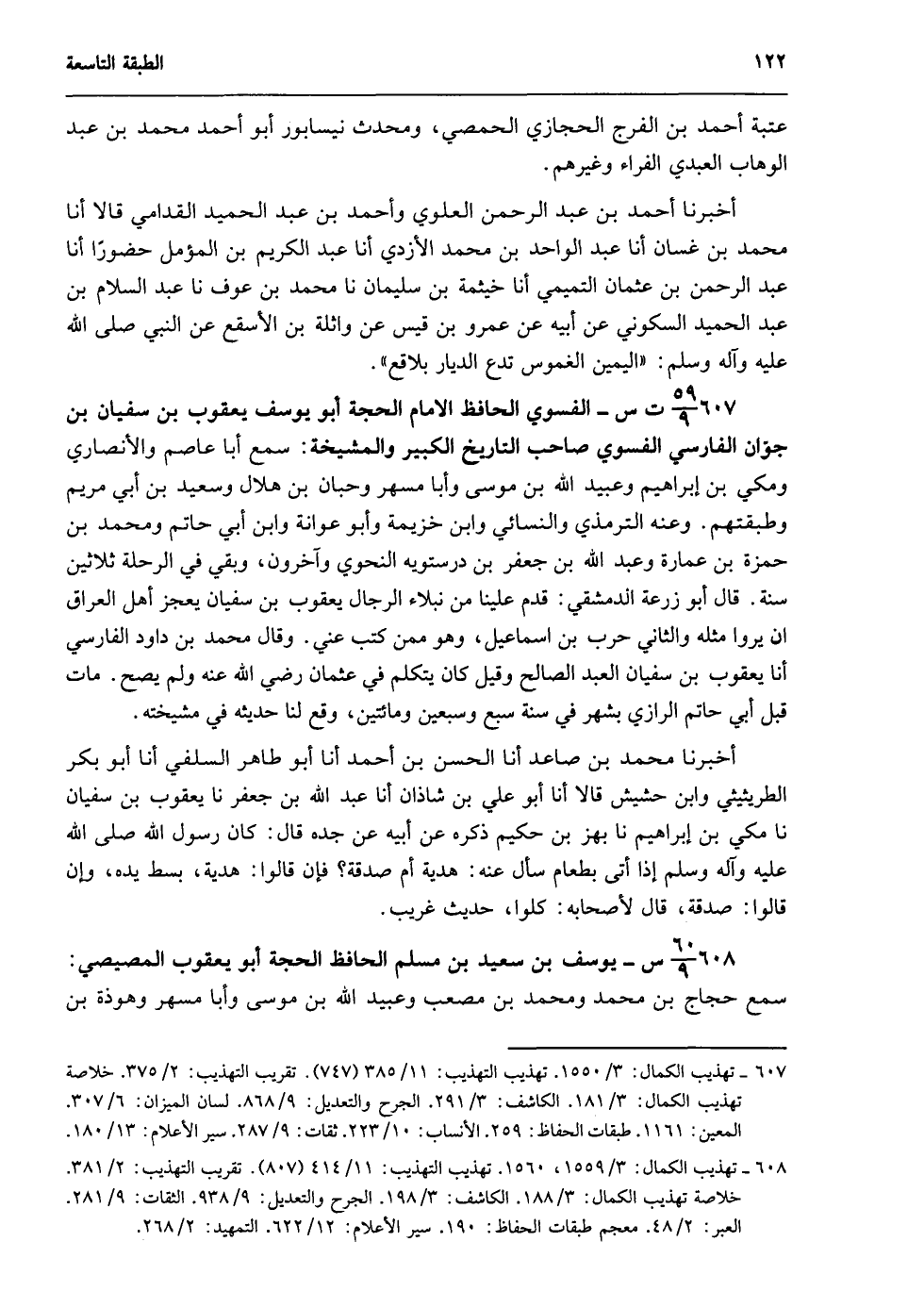 607- 59/ 9ت س- الفسوي الحافظ الإمام الحجة أبو يوسف يعقوب بن سفيان بن جوان الفارسي الفسوي صاحب التاريخ الكبير والمشيخة: