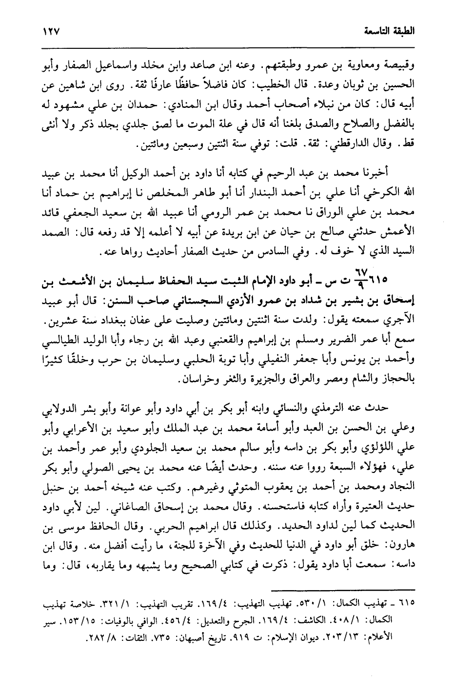 615- 67/ 9ت س - أبو داود الإمام الثبت سيد الحفاظ سليمان بن الأشعث بن إسحاق بن بشير بن شداد بن عمرو الأزدي السجستاني صاحب السنن: