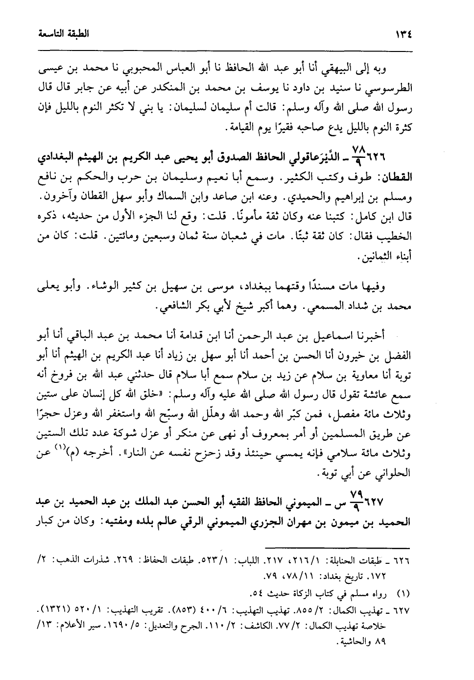 626- 78/ 9- الديرعاقولي الحافظ الصدوق أبو يحيى عبد الكريم بن الهيثم البغدادي القطان: