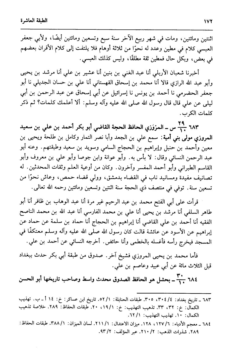 683- تاريخ بغداد: 4/ 304، 305. طبقات الحنابلة: 1/ 52. تاريخ ابن عساكر: خ: 14 أ-ب. تهذيب الكمال: خ: 32، 33. تهذيب التهذيب: خ: 1/ 19، 20. طبقات الحفاظ: 289. خلاصة تهذيب الكمال: 10. تهذيب التهذيب: 1/ 62.