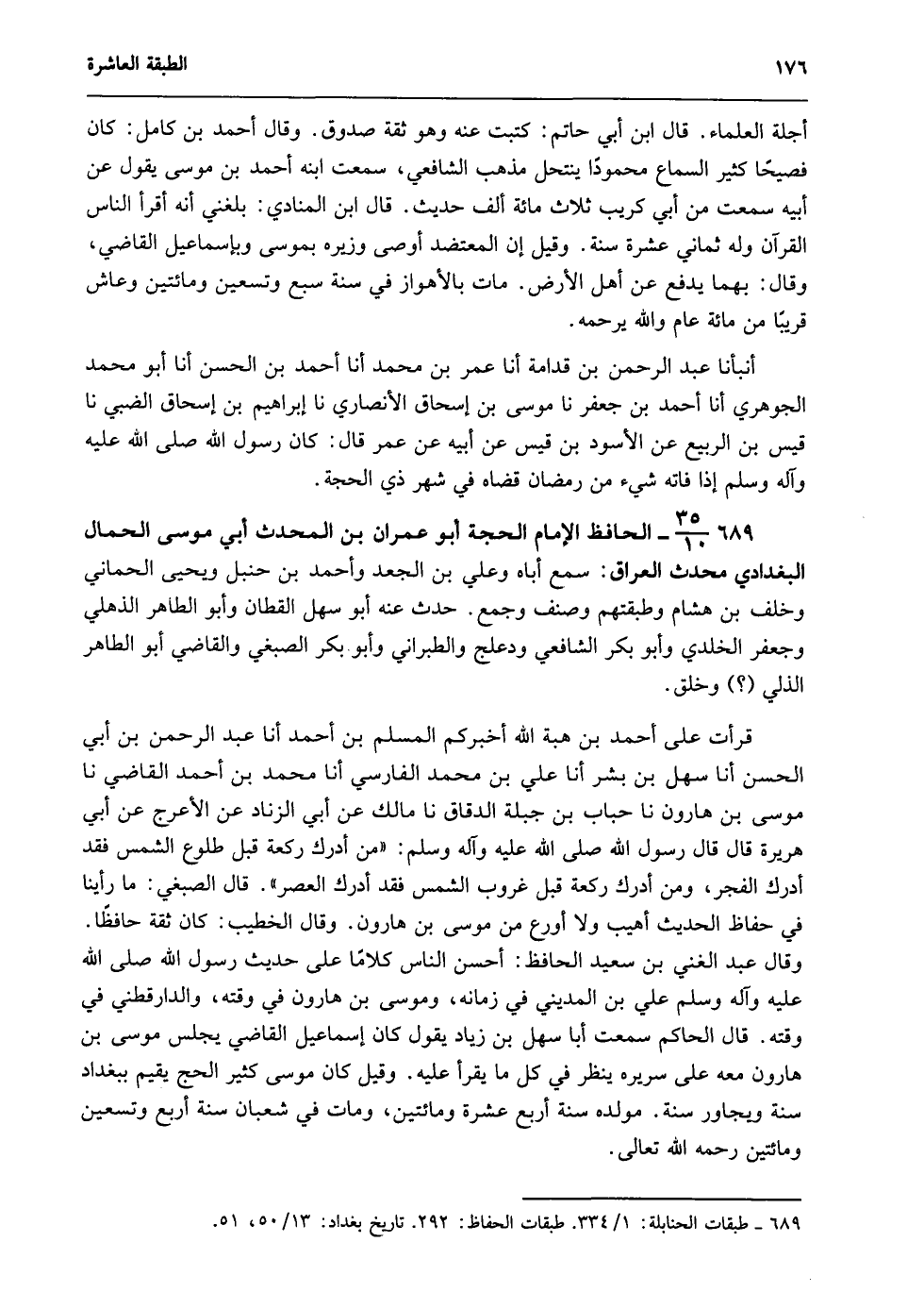 689- طبقات الحنابلة: 1/ 334. طبقات الحفاظ: 292. تاريخ بغداد: 13/ 50، 51.