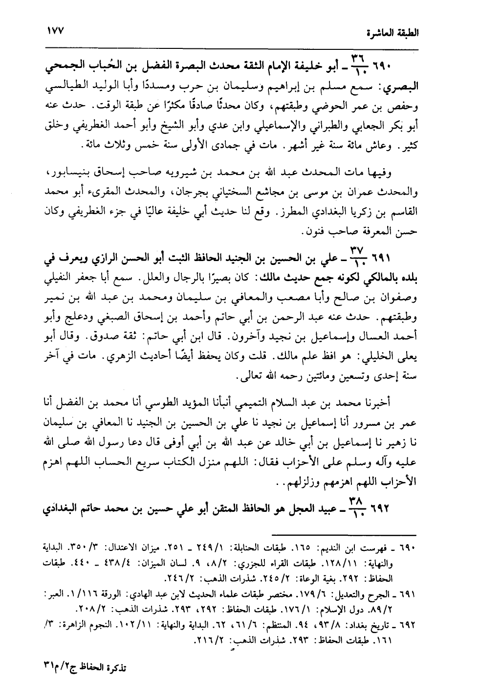 690- 36/ 10- أبو خليفة الإمام الثقة محدث البصرة الفضل بن الحباب الجمحي البصري: