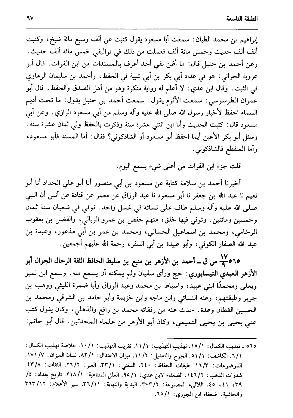 565- 17/ 9س ق - أحمد بن الأزهر بن منيع بن سليط الحافظ ثقة الرحال الجوال أبو الأزهر العبدي النيسابوري: