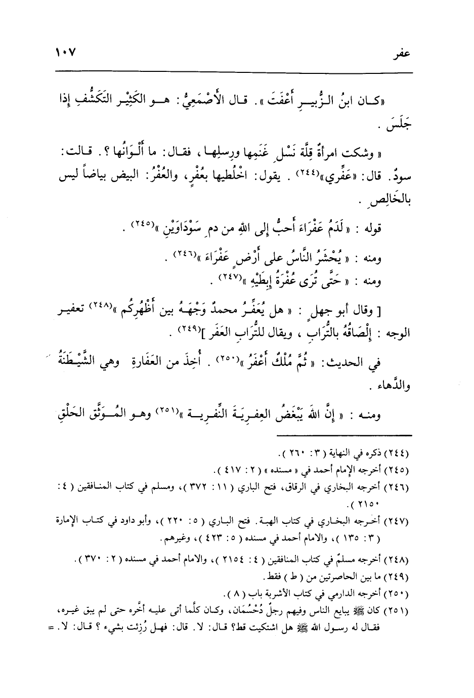 وَشَكتْ امْرَأَة قلَّة نسل غنمها ورسلها فَقَالَ مَا ألوانها قَالَت سود قَالَ عفري يَقُول اخلطيها بعفر والعفر الْبيض بَيَاضًا لَيْسَ بالخالص