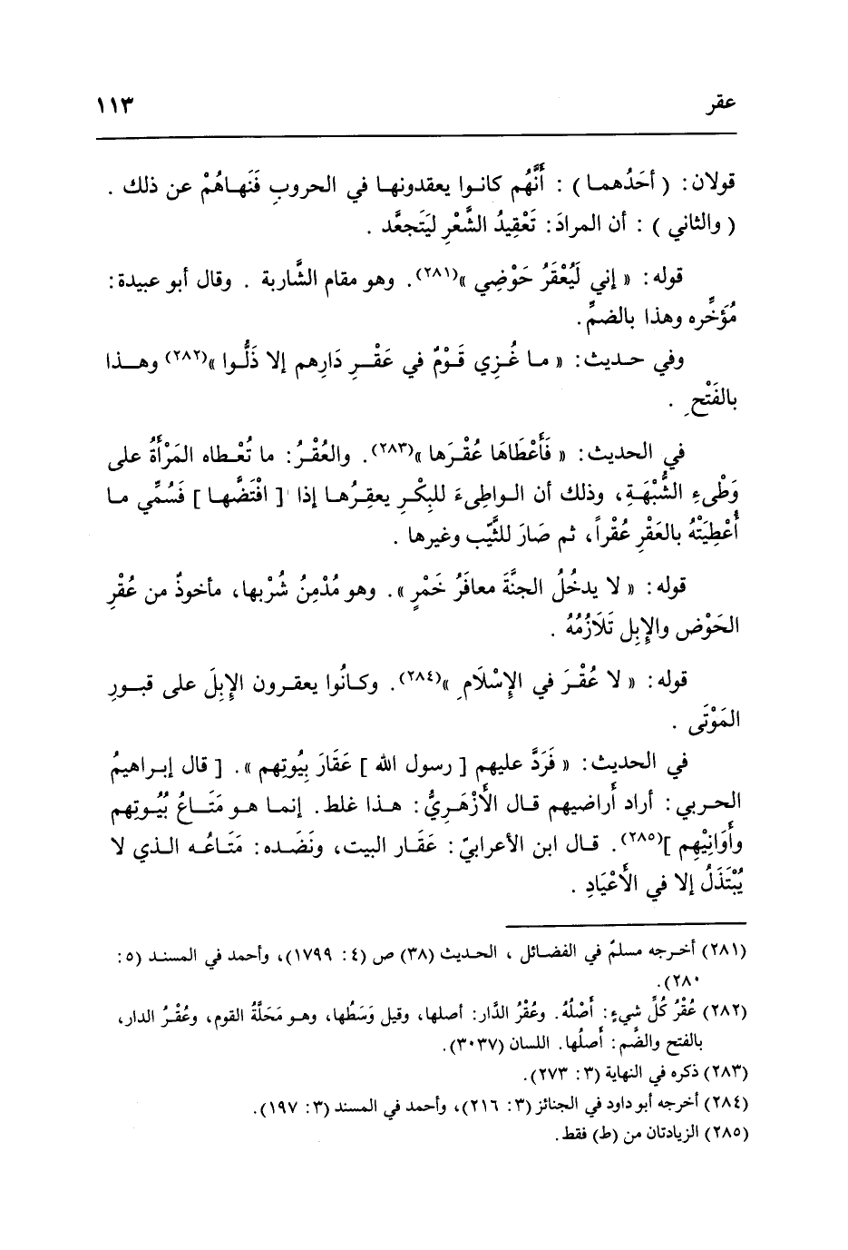فِي الحَدِيث فَرد عَلَيْهِم رَسُول الله عقار بُيُوتهم قَالَ إِبْرَاهِيم الْحَرْبِيّ أَرَادَ أراضيهم قَالَ الْأَزْهَرِي هَذَا غلط إِنَّمَا هُوَ مَتَاع بُيُوتهم وأوانيهم قَالَ ابْن الْأَعرَابِي عقار الْبَيْت ونضده مَتَاعه الَّذِي لَا يبتذل إِلَّا فِي الأعياد