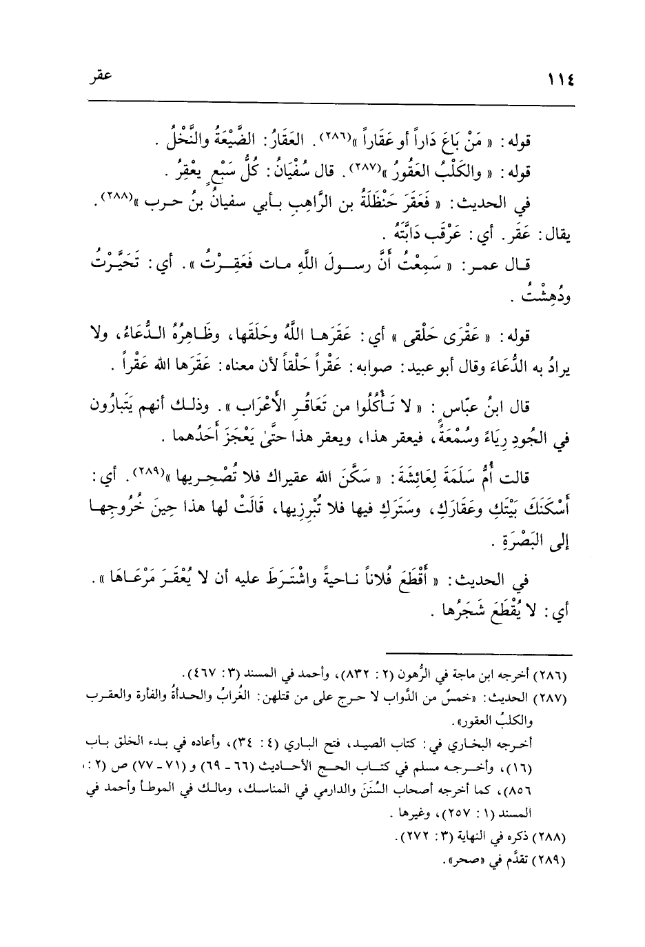 فِي الحَدِيث فعقر حَنْظَلَة بن الراهب بِأبي سُفْيَان بن حَرْب يُقَال عقر أَي عرقب دَابَّته