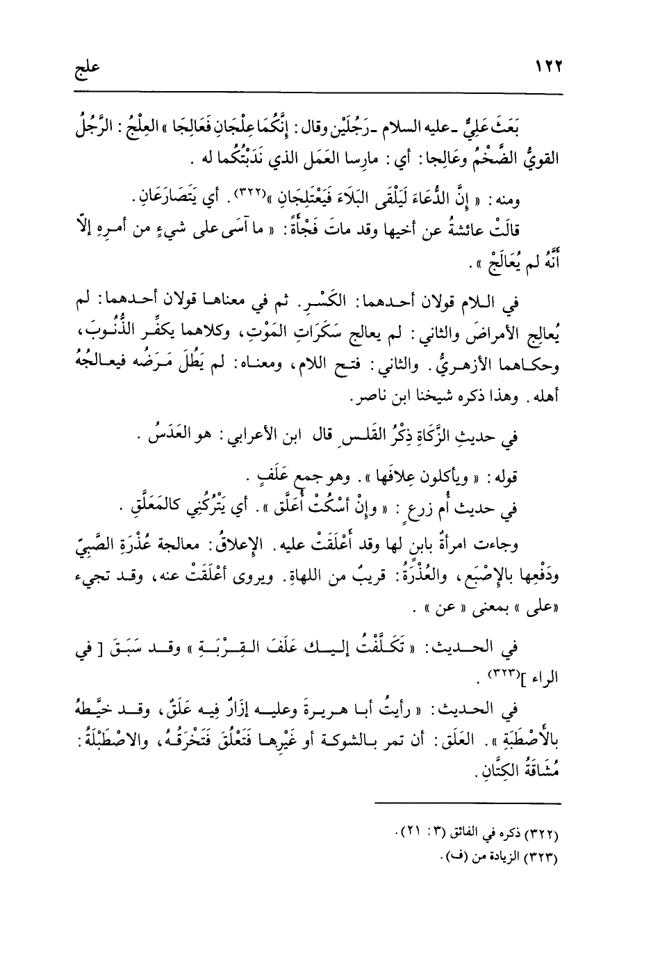 بعث عَلّي عَلَيْهِ السَّلَام رجلَيْنِ وَقَالَ إنَّكُمَا علجان فعالجا العلج الرجل الْقوي الضخم وعالجا أَي مارسا الْعَمَل الَّذِي ندبتكما لَهُ