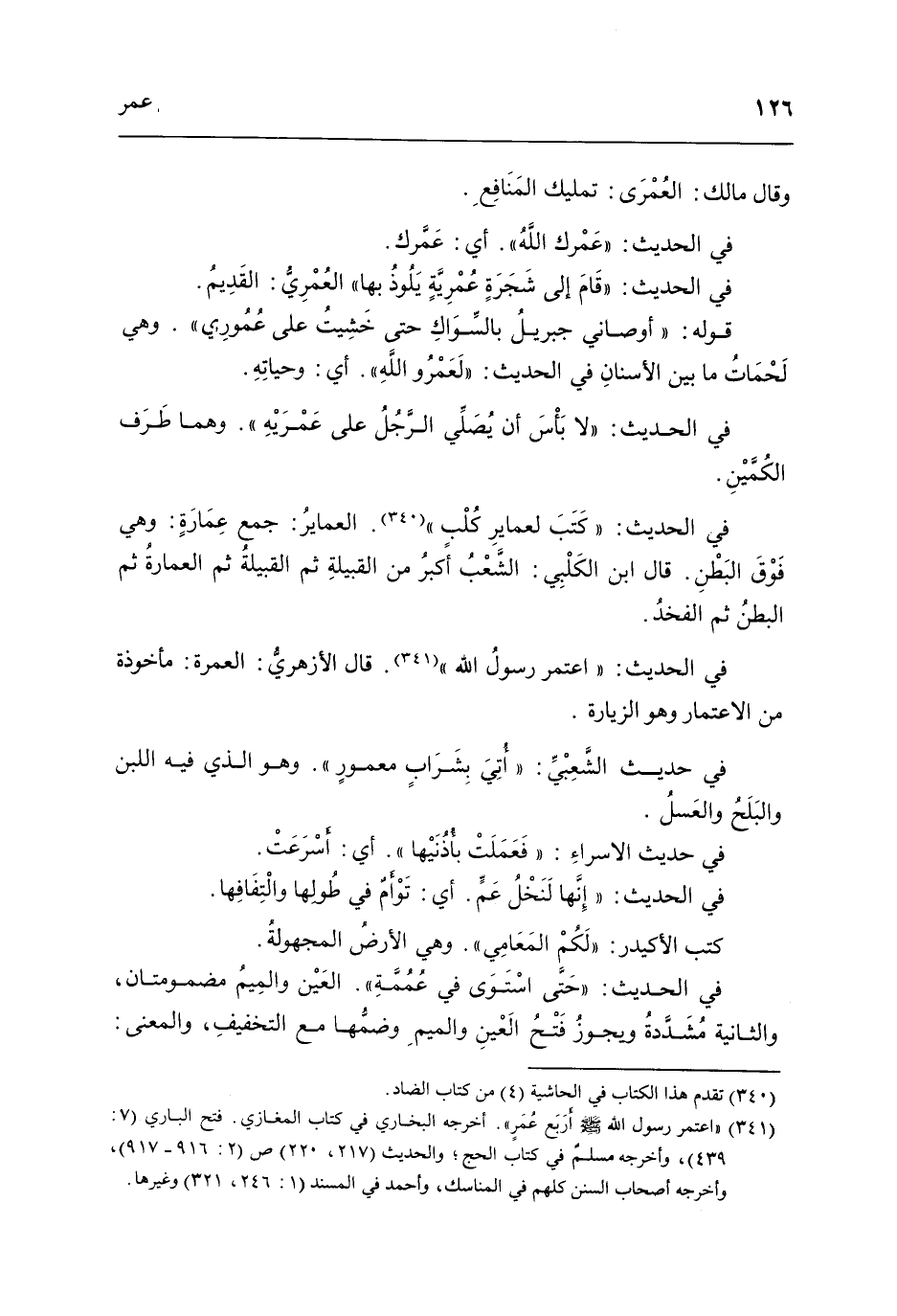 فِي الحَدِيث اعْتَمر رَسُول الله قَالَ الْأَزْهَرِي الْعمرَة مَأْخُوذَة من الاعتمار وَهُوَ الزِّيَارَة