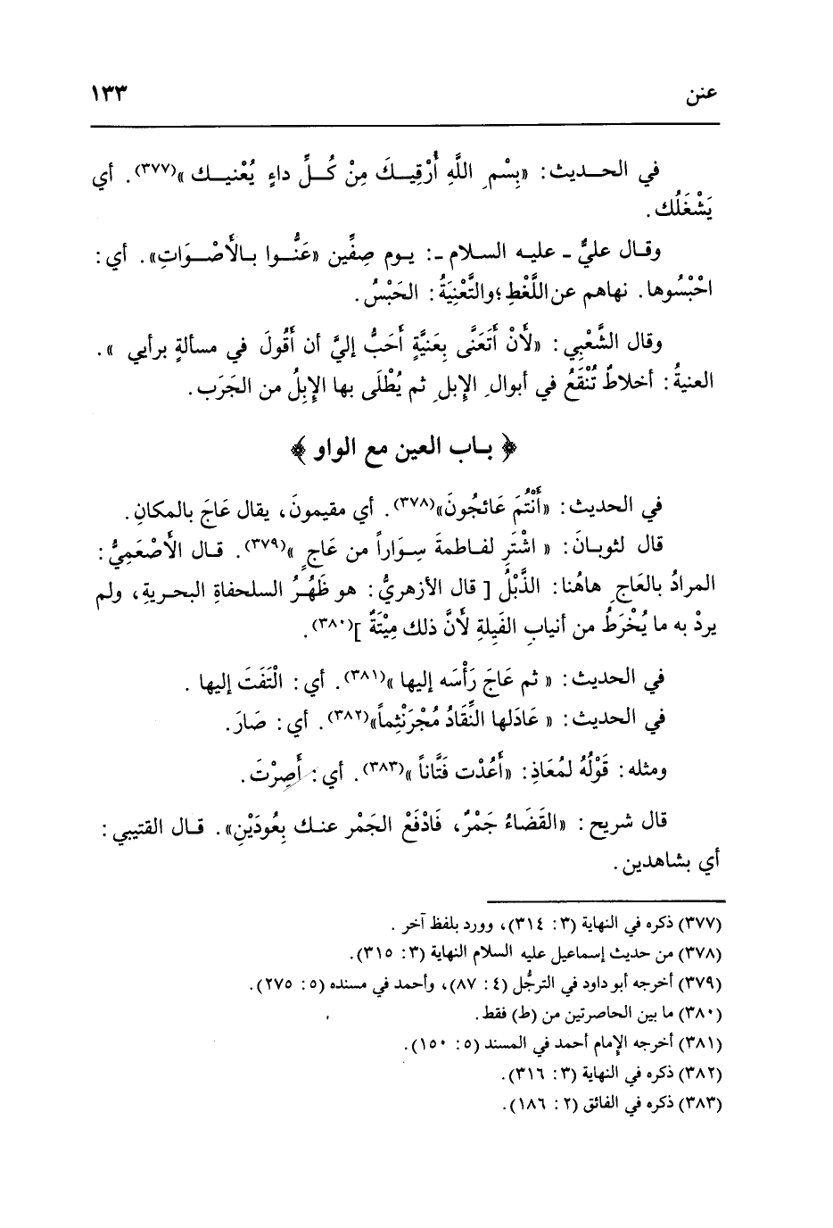 فِي الحَدِيث ثمَّ عاج رَأسه إِلَيْهَا أَي الْتفت إِلَيْهَا