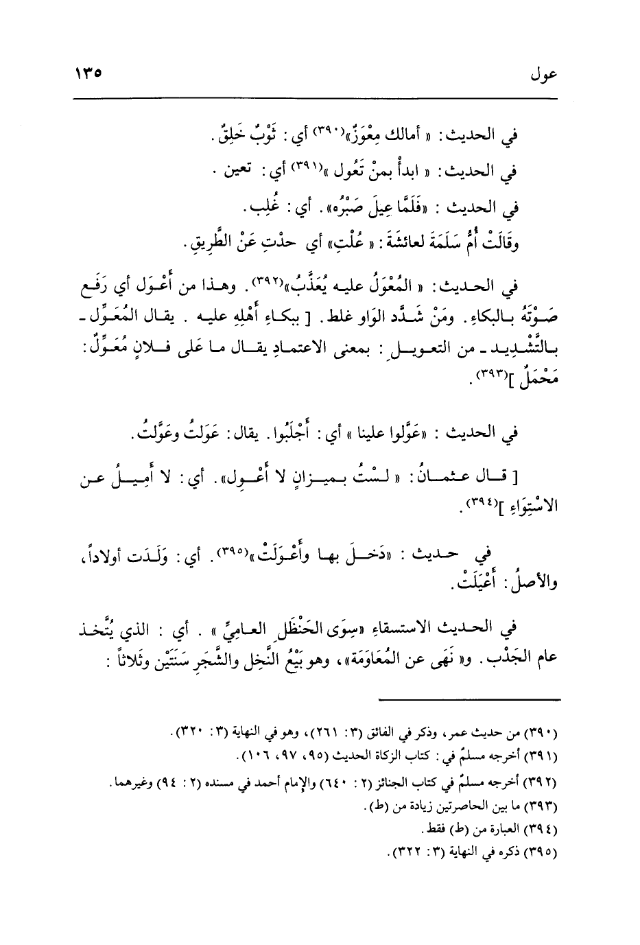 فِي الحَدِيث الْمعول عَلَيْهِ يعذب وَهَذَا من أعول أَي رفع صَوته بالبكاء وَمن شدد الْوَاو غلط ببكاء أَهله عَلَيْهِ يُقَال الْمعول بِالتَّشْدِيدِ من التعويل بِمَعْنى الِاعْتِمَاد يُقَال مَا عَلَى فلَان معول محمل