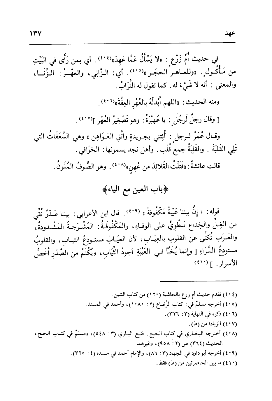 وَقَالَ رجل لرجل يَا عهيرة وَهُوَ تَصْغِير العهر