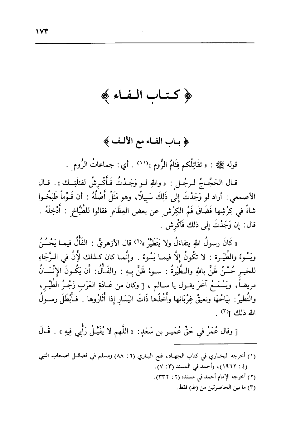 كَانَ رَسُول الله يتفاءل وَلَا يتطير قَالَ الْأَزْهَرِي الفأل فِيمَا يحسن ويسوء والطيرة لَا تكون إِلَّا فِيمَا يسوء وَإِنَّمَا كَانَ كَذَلِك لِأَن فِي الرَّجَاء للخير حسن ظن بِاللَّه والطيرة سوء ظن بِهِ والفأل أَن يكون الْإِنْسَان مَرِيضا وَيسمع آخر يَقُول يَا سَالم وَكَانَ من عَادَة الْعَرَب زجر الطير والتطير نياحها ونعيق غربانها وَأَخذهَا ذَات الْيَسَار إِذا أَثَارُوهَا فَأبْطل رَسُول الله ذَلِك