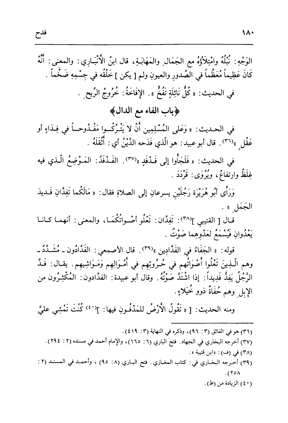 قَوْله الْجفَاء فِي الْفَدادِين قَالَ الْأَصْمَعِي الفدادون مشدد وهم الَّذين تعلوا أَصْوَاتهم فِي حروثهم فِي أَمْوَالهم ومواشيهم يُقَال فد الرجل يفد فديدا إِذا اشْتَدَّ صَوته وَقَالَ أَبُو عُبَيْدَة الفدادون المكثرون من الْإِبِل وهم حُفَاة ذَوُو خُيَلَاء
