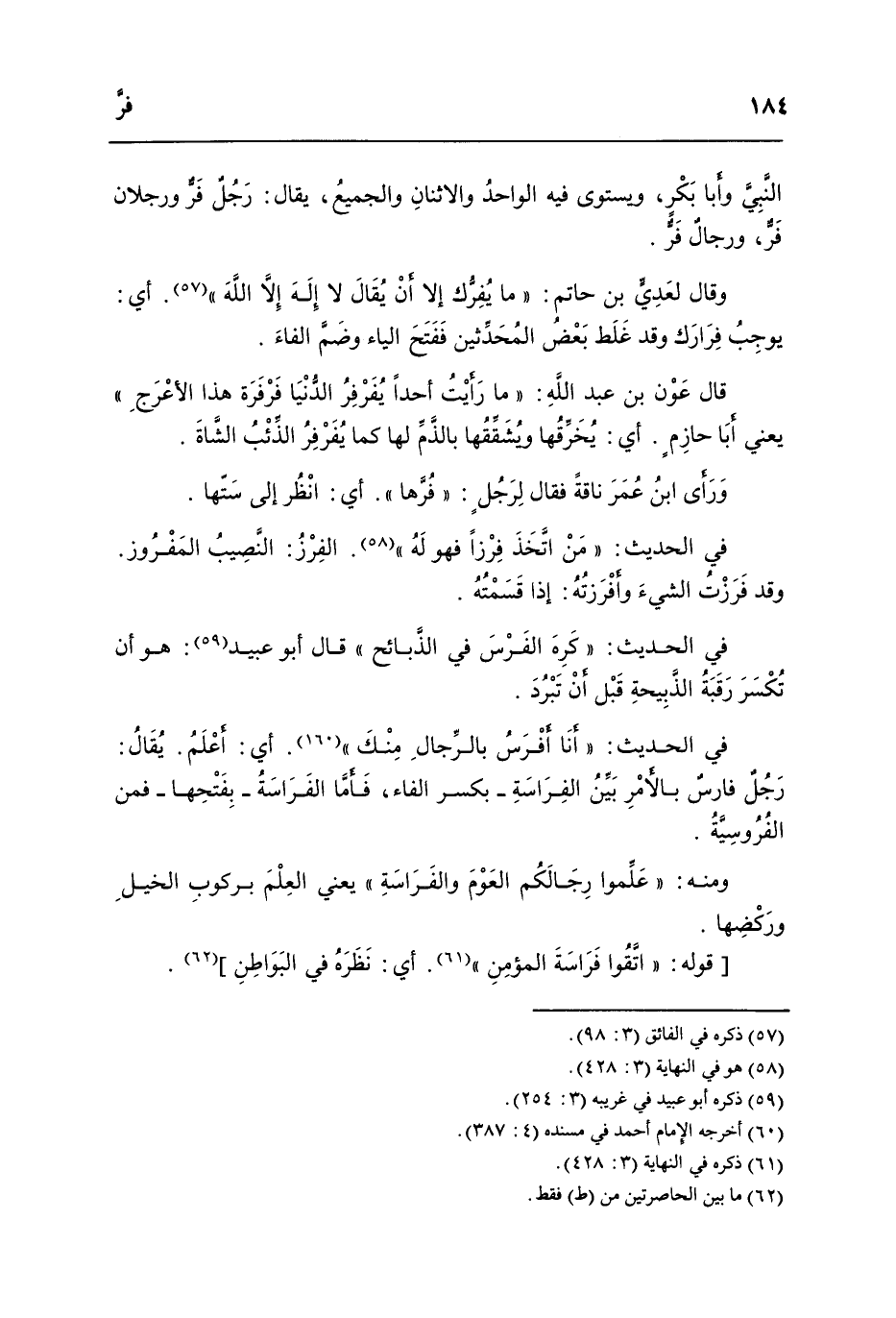 النَّبِي وَأَبا بكر ويستوى فِيهِ الْوَاحِد والاثنان والجميع يُقَال رَحل فر ورجلان فر وَرِجَال فر