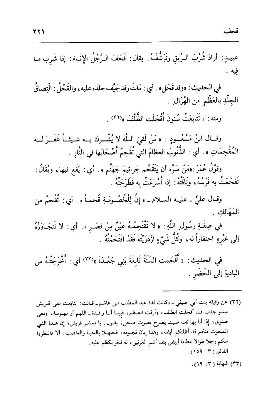 وَقَالَ عَلّي عَلَيْهِ السَّلَام إِن للخصومة قحما أَي تقحم من المهالك