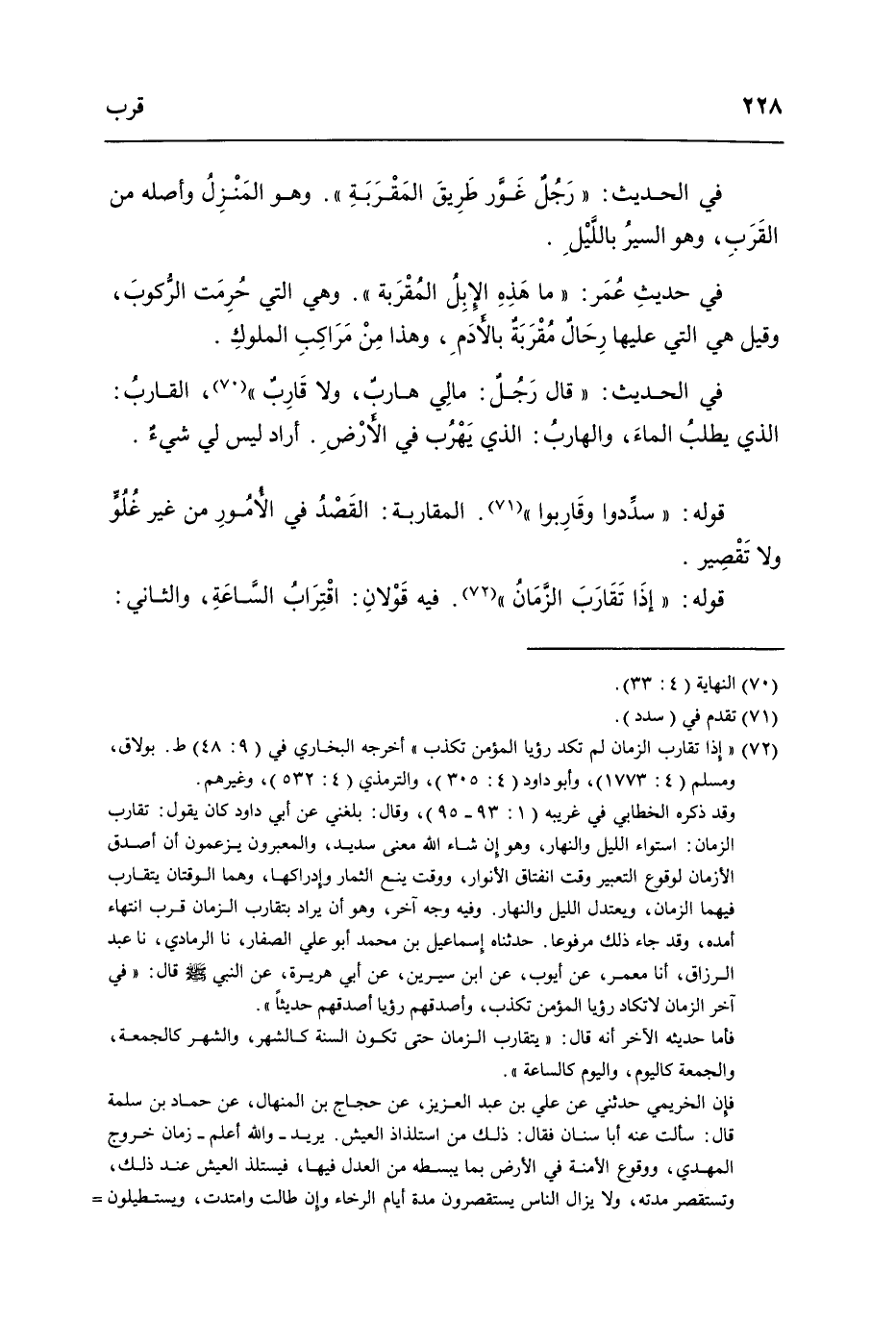 قَوْله إِذا تقَارب الزَّمَان فِيهِ قَولَانِ اقتراب السَّاعَة وَالثَّانِي