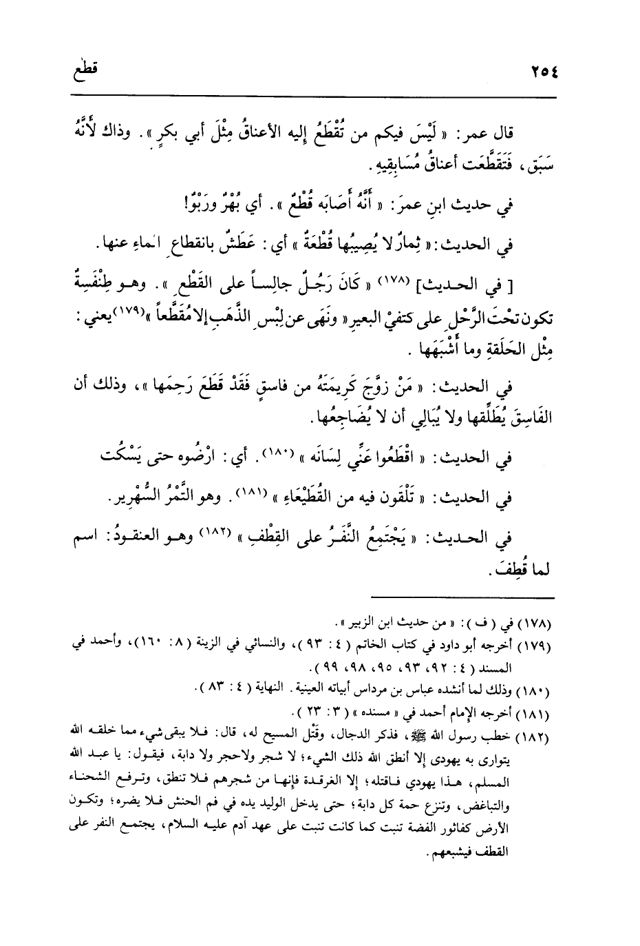فِي الحَدِيث كَانَ رجل جَالِسا عَلَى الْقطع وَهُوَ طنفسة تكون تَحت الرحل عَلَى كَتِفي الْبَعِير وَنَهَى عَن لبس الذَّهَب إِلَّا مقطعا يَعْنِي مثل الْحلقَة وَمَا أشبههَا