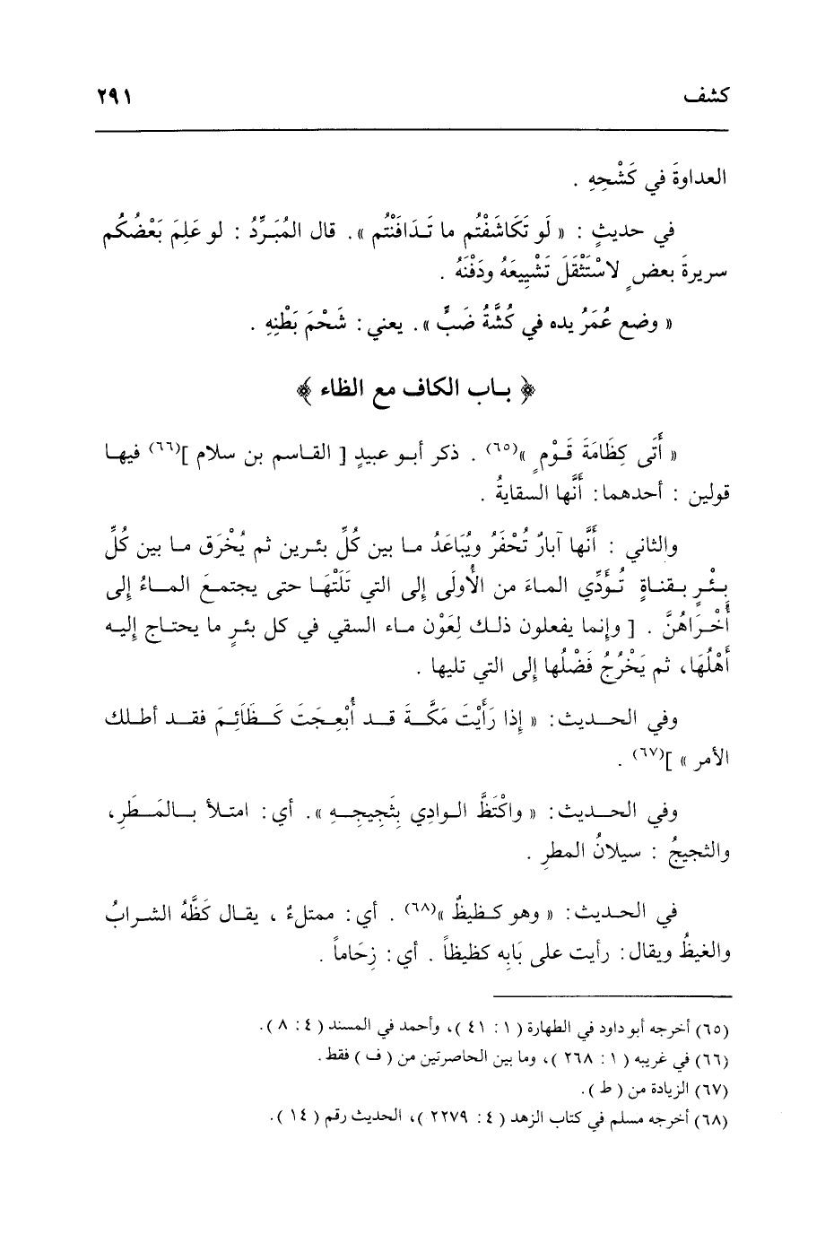 أَتَى كظامة قوم ذكر أَبُو عبيد الْقَاسِم بن سَلام فِيهَا قَوْلَيْنِ أَحدهمَا أَنَّهَا السِّقَايَة