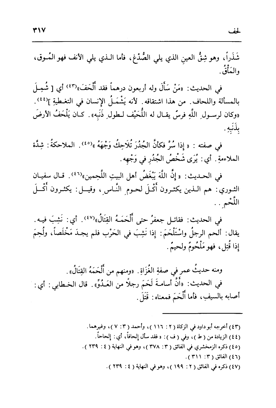 فِي الحَدِيث أَن أُسَامَة لحم رجلا من الْعَدو قَالَ الْخطابِيّ أَي أَصَابَهُ بِالسَّيْفِ فَأَما ألحم فَمَعْنَاه قتل