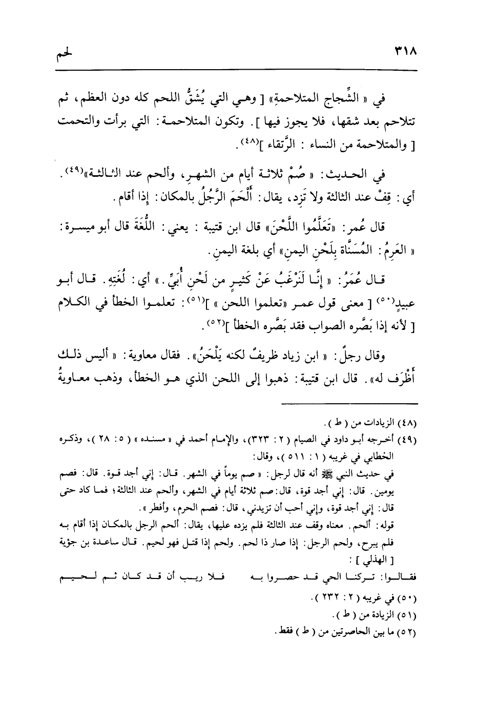 قَالَ عمر تعلمُوا اللّحن قَالَ ابْن قُتَيْبَة يَعْنِي اللُّغَة قَالَ أَبُو ميسرَة العرم المسناة بلحن الْيمن أَي بلغَة الْيمن
