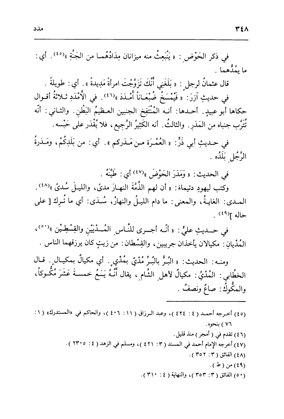 وَمِنْه الحَدِيث الْبر بِالْبرِّ مدى بمدي أَي مكيال بِمِكْيَال قَالَ الْخطابِيّ المدي مكيال لأهل الشَّام يُقَال أَنه يسع خَمْسَة عشر مكوكا والمكوك صَاع وَنصف