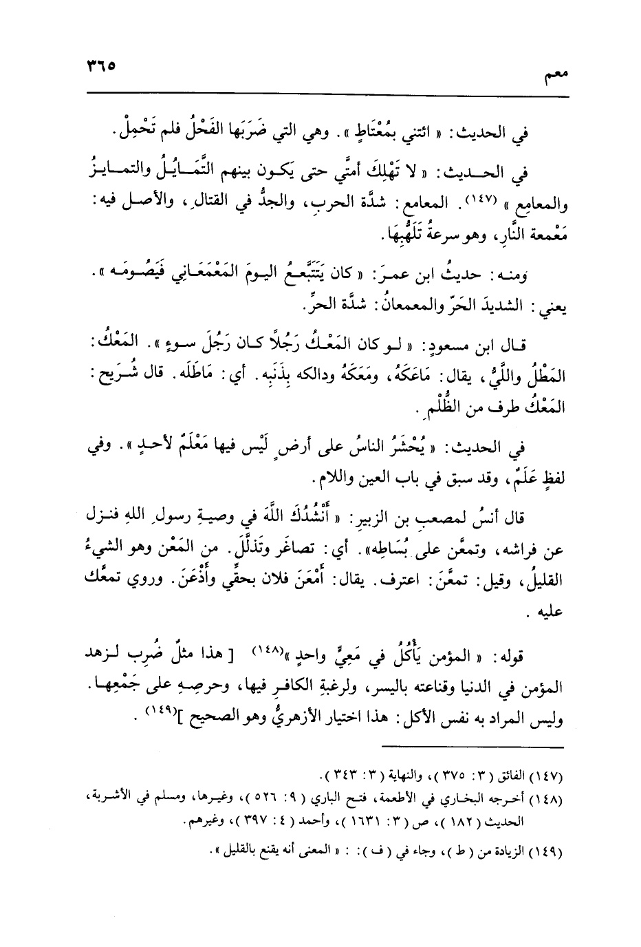وَمِنْه حَدِيث ابْن عمر كَانَ يتتبعع الْيَوْم المعمعاني فيصومه يَعْنِي الشَّديد الْحر والمعمعان شدَّة الْحر