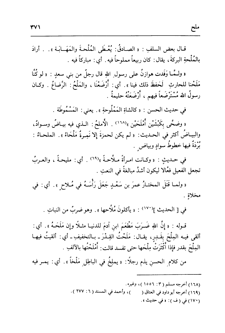 فِي الحَدِيث يَأْكُلُون ملاحها وَهُوَ ضرب من النَّبَات