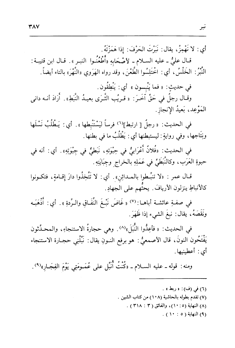 قَالَ عَلّي عَلَيْهِ السَّلَام لأَصْحَابه أطعنوا النبر قَالَ ابْن قُتَيْبَة النبر الخلس أَي اختلسوا الطعْن وَقد رَوَاهُ الْهَرَوِيّ النَّهر بِالتَّاءِ أَيْضا
