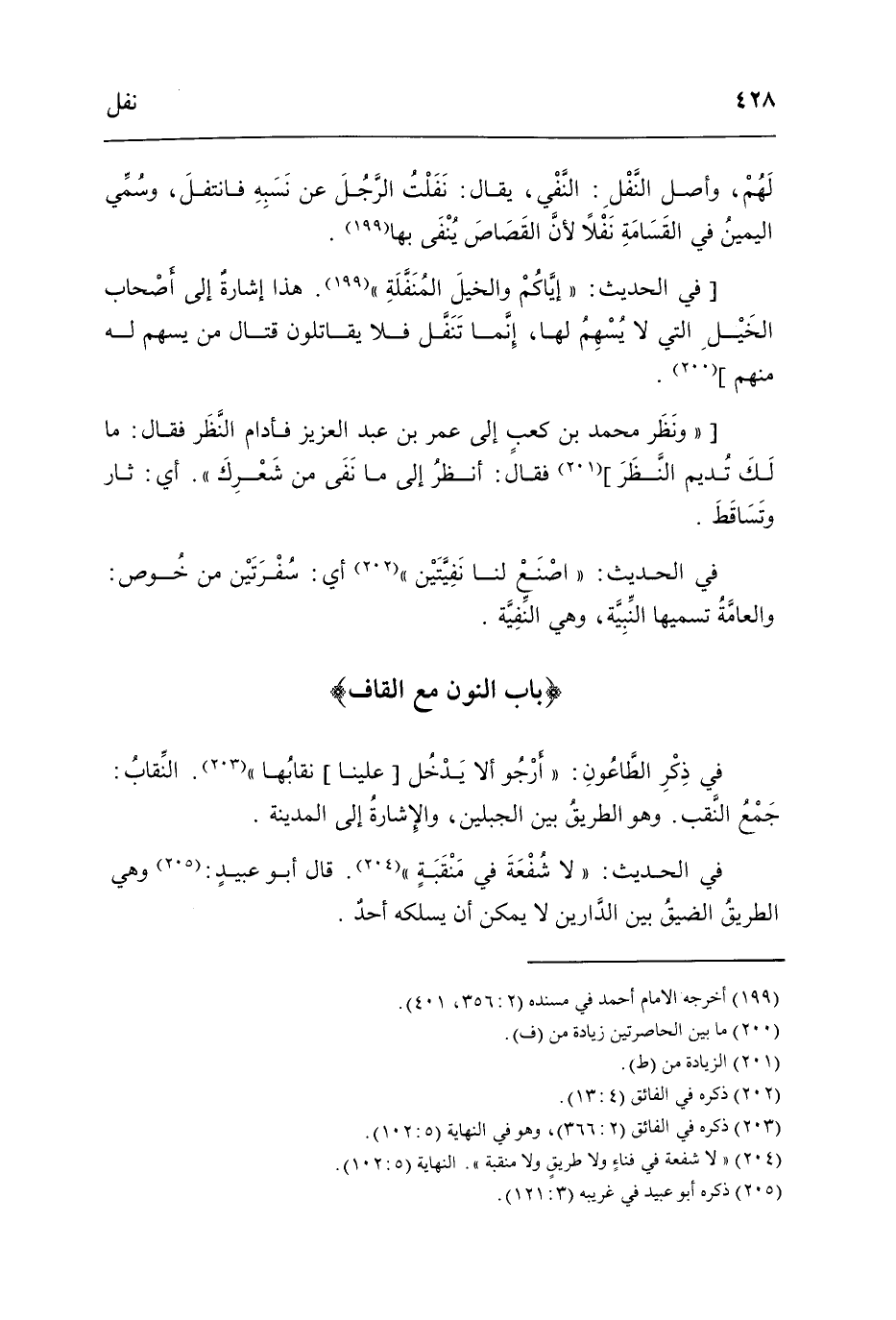 فِي الحَدِيث إيَّاكُمْ وَالْخَيْل المنفلة هَذَا إِشَارَة إِلَى أَصْحَاب الْخَيل الَّتِي لَا يُسهم لَهَا إِنَّمَا تنفل فَلَا يُقَاتلُون قتال من يُسهم لَهُ مِنْهُم