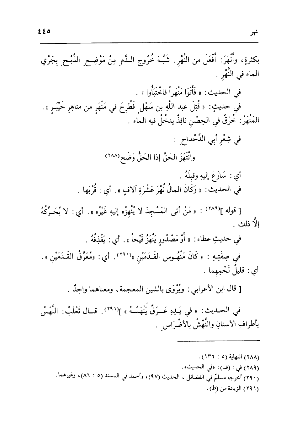 بِكَثْرَة وأنهر أفعل من النَّهر شبه خُرُوج الدَّم من مَوضِع الذّبْح بجري المَاء فِي النَّهر