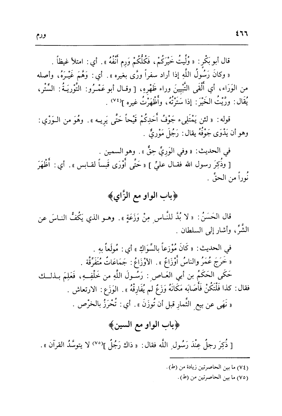 بَاب الْوَاو مَعَ الزَّاي