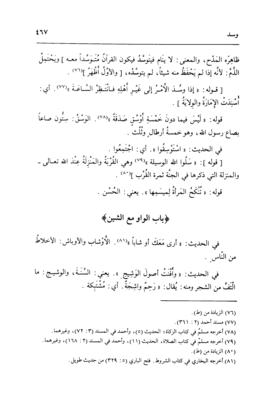 ظَاهِرَة الْمَدْح وَالْمعْنَى لَا ينَام فيتوسد فَيكون الْقُرْآن متوسدا مَعَه وَيحْتَمل الذَّم لِأَنَّهُ إِذا لم يحفظ مِنْهُ شَيْئا لم يتوسده وَالْأول أظهر